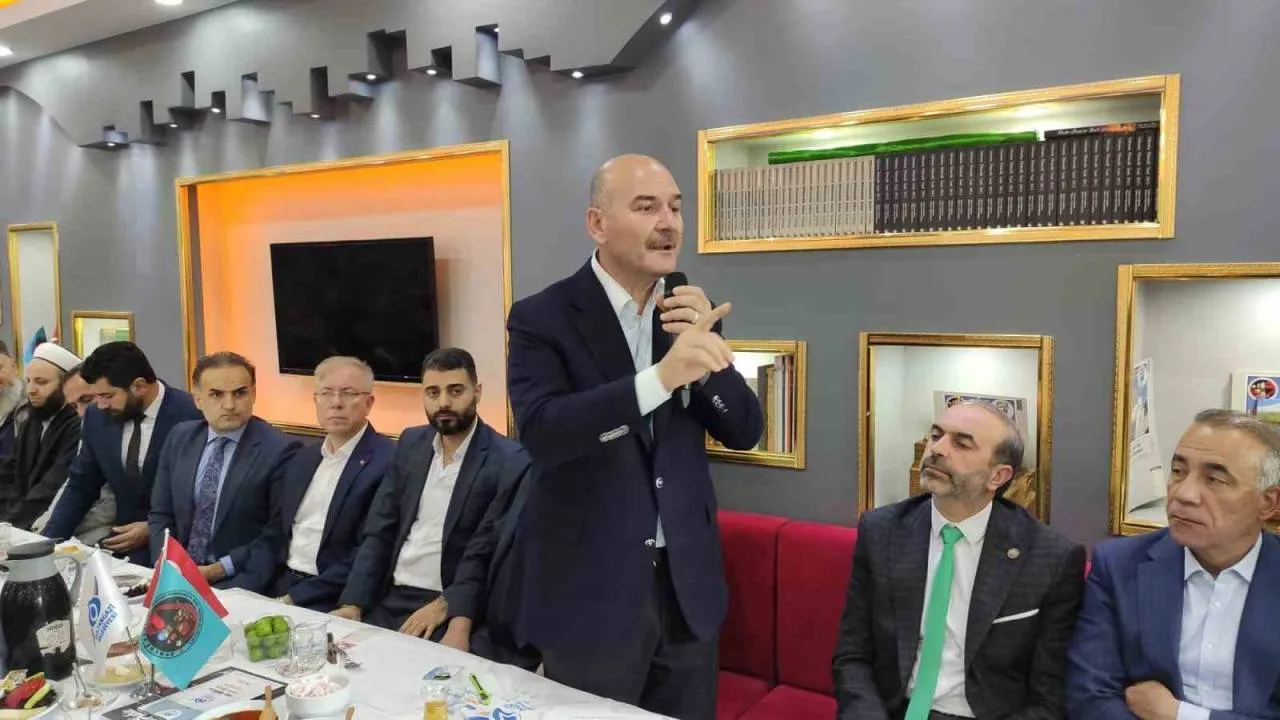 Burada konuşan İçişleri Bakanı Süleyman Soylu, "Aslında bu sabah şuradaki manzarayı görüyorum. Bu manzara Türkiye’nin içinde bulunduğu tablonun en iyi özetidir. Biz neredeyiz biz şu anda Ahmed-i Hani Kültür Evindeyiz. Size şu kadar bir şey söyleyeyim buradan 20 yıl 30 yıl önce veya Tayyip Erdoğan iktidara gelmeden önce lütfen sözümü yanlış anlamayın böyle bir birlikteliği oluşturabilmek kolay bir iş değildir. Kimse kusura bakmasın şimdi yıllardan beri burada aynı hamurda yoğrulmuş aynı toprağın çocukları, aynı dinin evlatları, aynı medeniyetin evlatları bir masanın etrafında birbirini methüsena ederek oturuyor. Adnan Menderes idam edildikten sonra Batı elini tamamen Türkiye’nin içerisine sokmuştur bütünü kurumları ve kurallarıyla iş insanları ile medyası ile üniversitesi ile Tayyip Erdoğan tam 21 yıldır o eli alıp dışarıya atmak için uğraşmaktadır. Çocukluğumuzdan beri hep şöyle büyümedik mi bize hep şöyle demediler mi? Türkiye’de petrol vardır ama Türkiye’ye çıkarttırmazlar. Öyle ustalarımız var ki sadece şunu söyleriz. Bir tek adam yapamaz her şeyi yapar, bu bir tek adam yapamaz her şeyi yapamaz bu insanlar bugüne kadar bir araba yapamazlar mı ama bugün yaptılar. Ayasofya’yı açmak zaten orada sadece 5 vakit namazın kılınması anlamına gelmez. Açabilmenin de iradesini ortaya koyar. Kıymetli hemşehrilerim açabildik; arabamızı yapabildik; gazımızı çıkartabildik; petrolümüze ulaşabildik. Bunu yapabilme kabiliyetini ortaya koyduk. 2. mesele ise Batı’nın Amerika’nın elini Türkiye’den alıp atmaktan ziyade, 2. mesele Tayyip Erdoğan Türkiye’de doğu ile batıyı birleştirdi. Bu her şeyden zordur. Sadece yollar ile değil evet onu yaptık, doğru birleştirmek sadece havalimanı ile değil onu da yaptık, birleştirmek sadece gelişme ve kalkınma anlayışı ile değil onu da yaptık doğru. Ben 2014 yılında Ağrı’da geziyordum seçimler için, insanlar bana direkt şey söylediler. Dediler ki ’bizim doğalgazımız gelsin yeter. Şu hastane yapılsın yeter’ hepsi oldu. Daha fazlası da oldu doğalgazlar geldi. Hastaneler yapıldı, altyapılar yapıldı. Her şey daha fazla oldu ama zaten daha fazla olması için adım atıyoruz. Şimdi doğu ile batı arasında herhangi bir fark söz konusu değildir" ifadelerini kullandı.