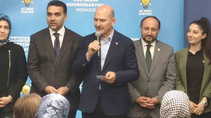 İçişleri Bakanı Süleyman Soylu, Sarıyer AK Parti İlçe Başkanlığı’nda partililerle bir araya geldi. Programa AK Parti Sarıyer İlçe Başkanı Halil İbrahim Kurşun, AK Parti milletvekilleri ve birçok partili katıldı. Burada konuşan Bakan Soylu, "Yıllardır Türkiye’ye demokrasi vaazı edenler, Türkiye’nin demokrasisi eksik diyenler, Türkiye’nin milli iradesinde problem var diyenlere Türk milleti çok güzel bir cevap verdi. Türkiye’nin en güvenilir, en huzurlu ve en güzel seçimlerinden birisini hep birlikte yaşadık. Hem huzurlu, hem güvenli hem de en güzel seçimlerinden bir tanesi. Bu seçimde üzüldüğümüz iki kişi var. İstanbul Büyükşehir Belediye Başkanı ve Ankara Büyükşehir Belediye Başkanı hatırlıyorsunuz seçim akşamı ellerine bir kağıt verdiler. Milletimizi kandırmak için milletin huzuruna çıkardılar. ’Seçimi kazandık’ dediler. Bay Kemal de ’öndeyiz’ dedi. Kıymetli dava arkadaşlarım, kıymetli hanımefendiler, beyefendiler. Bu millet, onlardan o günden itibaren özür bekledi. Kimden? O iki belediye başkanından. Onlar özür dilemediler. Ama biliyorsunuz onlar disiplin açısından bana bağlı. Ben aziz milletimizden onların adına özür diliyorum. Yanlış yaptılar, milletimizi kandırmaya çalıştılar, onların adına özür diliyorum" dedi.