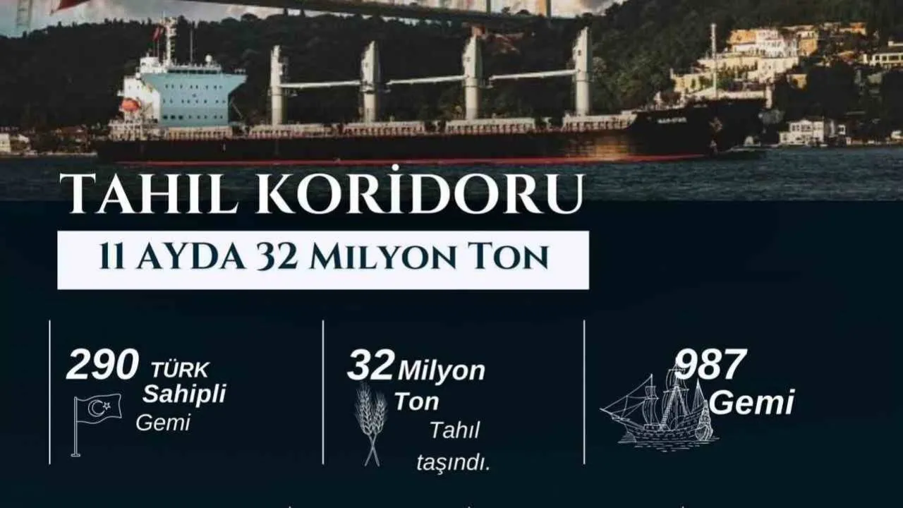 Ulaştırma ve Altyapı Bakanı Uraloğlu, koridorda taşınan tahıl hakkında bilgi vererek, "Türkiye en fazla tahılın taşındığı üçüncü ülke oldu. 44 ülkenin yer aldığı listede, 987 geminin 290’ı Türk bayraklı olup, 224 gemi ise ülkemizin farklı limanlarına geldi. Toplamda, 13 tahıl ve tahıl ürünün çeşitleri; arpa, buğday, mısır, soya, buğday kepeği, işlenmiş karışık gıda, soya fasulyesi, ayçiçeği çekirdeği, ayçiçeği küspesi, ayçiçek yağı ve bezelye bulunuyor" dedi.