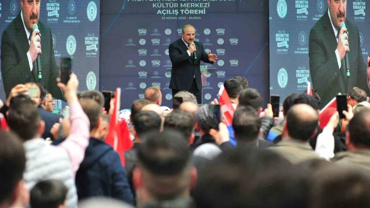 Necmettin Erbakan Kültür Merkezi’nin adının öneminden bahseden Bakan Varank, “Merhum Prof. Dr. Necmettin Erbakan, çok vizyoner bir insandı. Dava adamı bir insandı. Bugün bu açılışı yaparken Ankara’da ne oldu biliyor musunuz? Erbakan Hocamızın hep hayali olan, Türkiye ilk defa kendi jet motorlu uçağını bugün uçurdu. Türkiye’nin otomobilini yapmak Erbakan Hocamızın hayaliydi. İşte Togg’u biz gerçekleştirdik. Türkiye’nin tankını yapmak Erbakan Hocamızın hayaliydi. Altay tankını ordumuza teslim ettik. Türkiye’nin uçağını yapmak Erbakan Hocamızın hayaliydi. İşte bugün jet motorlu uçağımızı uçurduk. Biz bu ülkeyi kalkındırmanın, bu ülkeyi kendi ayakları üzerinde tutmanın yolu nereden geçtiğini gayet iyi biliyoruz. İnşallah yolumuzu aynı gayretle devam edeceğiz. Bu cahil muhalefetin ne dediğine de aldırmayacağız. Bu muhalefettekiler o kadar cahil ki. Ne üretimden anlarlar, ne sanayiden anlarlar, ne kalkınmadan anlarlar. Bunların yatırımdan anladığı heykelle musluk açmak. Şimdi o arkadaşlar o kadar Türkiye’den bihaberler ki, ‘Türkiye’nin otomobili İtalya’dan geliyor’ diyorlar değil mi? Bunlar ne Türkiye’yi biliyorlar ne Gemlik’i biliyorlar. Bunlar zannediyorlar ki Gemlik İtalya’da. Ama biz onlara Türkiye’yi de, Bursa’yı da, Gemlik’i de Allah’ın izniyle öğreteceğiz mi? Bu yatırımlarla şehrimizi, ilçelerimizi kalkındırmaya devam edeceğiz. Türkiye’yi kalkındırmanın yolu teknolojiden geçiyor. Sanayiden geçiyor. Katma değerli üretimden geçiyor. Bizim yaptığımız Türkiye’nin otomobili, batarya fabrikası gibi yatırımlar. Türkiye’nin tankı, Türkiye’nin TCG Anadolu gemisi, Türkiye’nin uçakları, işte bunlar hepimizin ekmeğini büyütecek yatırımlar. Biz bu ekmeği büyüttükçe Allah’ın izniyle refahı da kendi aramızda paylaşmış olacağız. Ülkemizi kalkındırmış olacağız. ‘Türkiye’nin otomobilini yaptınız ama Türkiye’nin otomobili karın doyuruyor mu?’ Böyle bir cahillik olmaz. Türkiye’nin otomobilinde çalışan binlerce emekçi kardeşimiz. Türkiye’nin batarya fabrikasında çalışacak binlerce emekçi kardeşimiz evine ekmek götürmüyor mu? Biz bu yatırımları yapmazsak bu istihdam nasıl oluşacak? İşte onun için biz bunların ne dediğine bakmayacağız. Yolumuza kararlılıkla devam edeceğiz. Tekrar güçlü bir şekilde sandıktan çıkacağız. Ama yetmez. Cumhur İttifakı’nı da mecliste tekrar çoğunluğa getireceğiz” diye konuştu.
