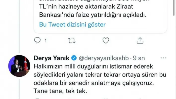 Aile ve Sosyal Hizmetler Bakanı Derya Yanık, sosyal medya üzerinden yaptığı paylaşımında yalan haberlerin pekiştirildiğini belirttiği açıklamasında, “15 Temmuz’un yaklaştığı şu günlerde, şehit yakınları ve gazilerimiz için vatandaşlarımızın yaptığı bağışlarla ilgili olarak yine bazı çirkin hesaplarla yalan bir algının pekiştirilmesine çalışılıyor. Halkımızın milli duygularını istismar ederek söyledikleri yalanı tekrar tekrar ortaya süren bu odaklara bir senedir anlatmaya çalışıyoruz. Tane tane, tek tek. Muhtemelen anlıyorlar ama bu, ürettikleri yalanı yeniden yaymalarına engel olmuyor. Bu vesileyle bir daha anlatalım. Bazı sosyal medya proflarımızın gerçekleri çarpıtma alışkanlığının önüne geçemesek de hakikate borcumuzu ödemiş oluruz” ifadelerine yer verdi.