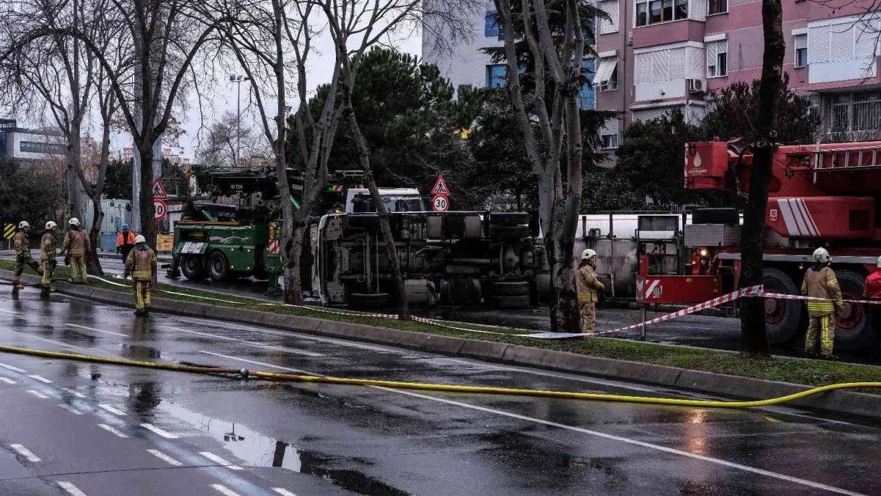 Bakırköy'de devrilen LPG yüklü tanker 6 saat sonrası yoldan kaldırıldı