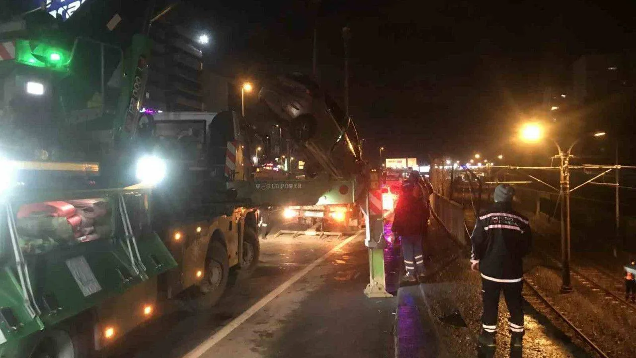 Bakırköy'de kontrolden çıkan araç metro yoluna uçtu: 2 yaralı