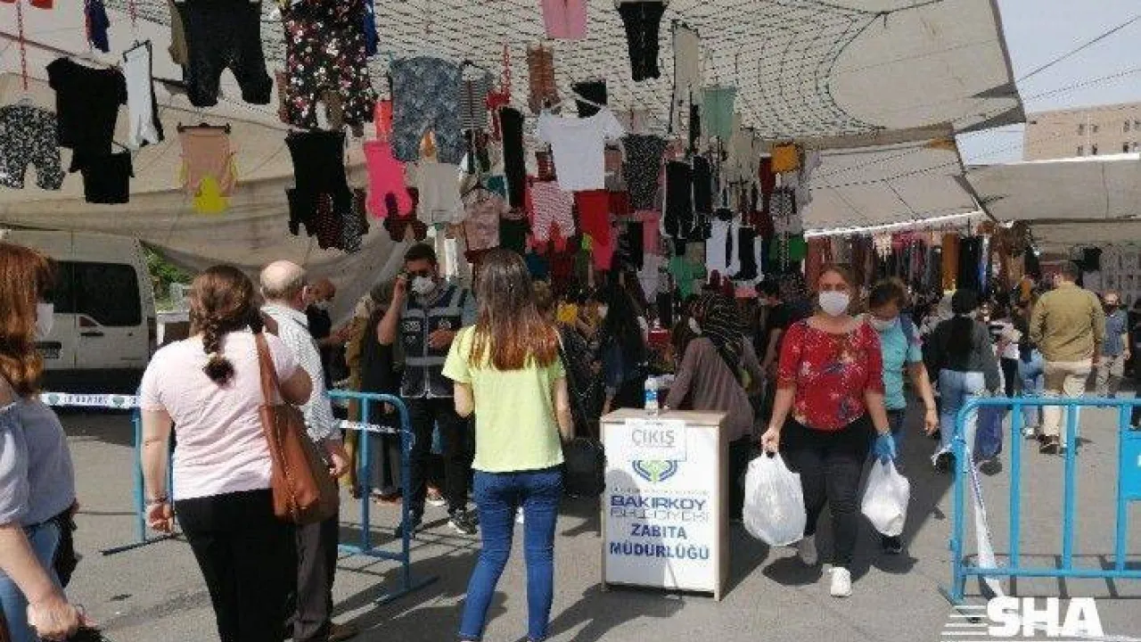 BAKIRKÖY'DE VATANDAŞLAR CUMARTESİ GÜNLERİ KURULAN ÜNLÜ SOSYETE PAZARINA AKIN ETTİ. POLİSLERİN PAZAR GİRİŞİNDE VATANDAŞLARI UYARDIĞI GÖRÜLÜRKEN, BUNA RAĞMEN SOSYAL MESAFEYİ VE MASKE TAKMAYI İHMAL EDENLER GÖZLENDİ.