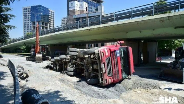 BAKIRKÖY'DE BİR HAFRİYAT KAMYONU SEYİR HALİNDEYKEN YOL ÇÖKTÜ. ÇÖKME SONUCU HAFRİYAT KAMYONU DEVRİLDİ.