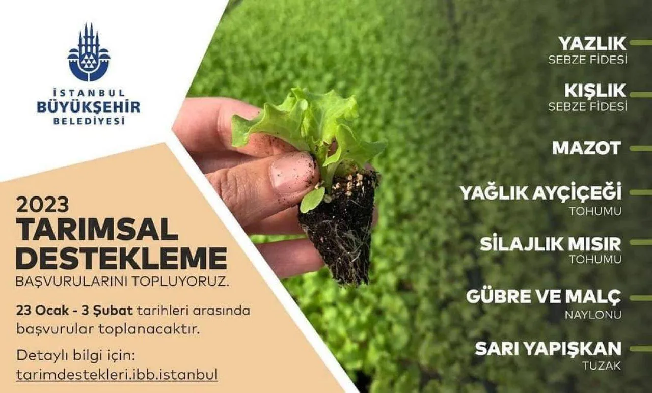 İBB ve Silivri Belediyesi Meclis üyesi Bora Balcıoğlu, 2023 yılı mısır ve ayçiçeği tohumu, yazlık ve kışlık fide, malç naylonu ve gübre, mazot destek talepleri 23 Ocak-3 Şubat 2023 tarihleri arasında yapılacağını söyledi.