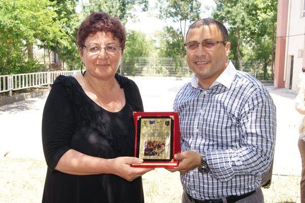Nurullah Baldöktü İlköğretim Okulu Müdürü Ahmet Çetin, Comenius Projesi'ne katkısı nedeniyle AK Parti Silivri İlçe Başkanı Metin Karakaş'a plaket vererek teşekkür etti.