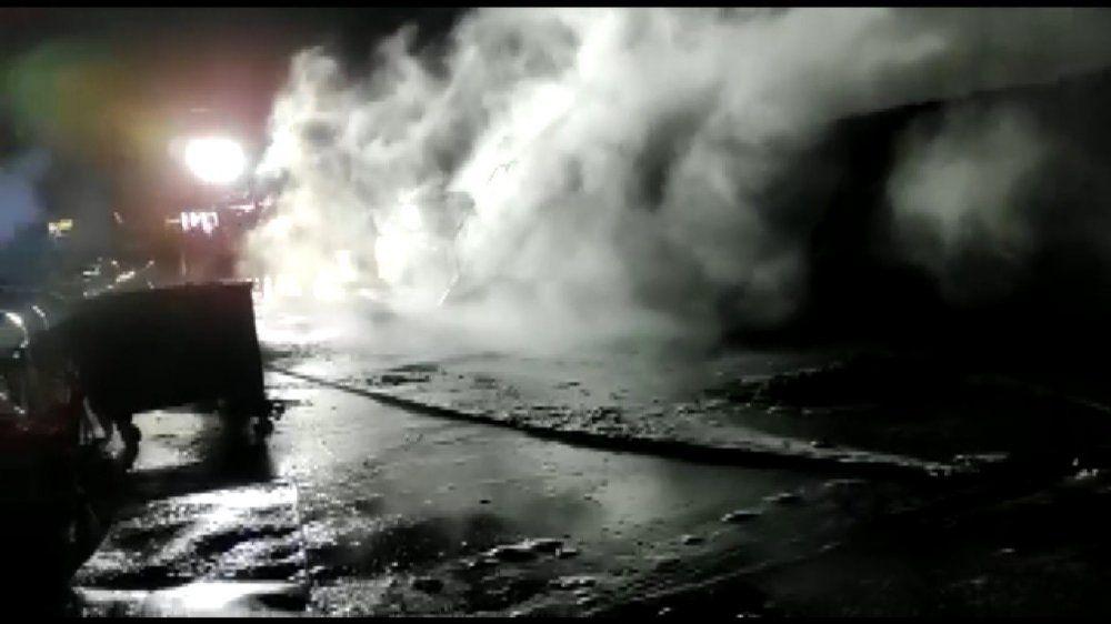 Alev alev yanan baraklar kullanılamaz hale geldi. Polis ekipleri yangının çıkış sebebine ilişkin çalışma başlattı.