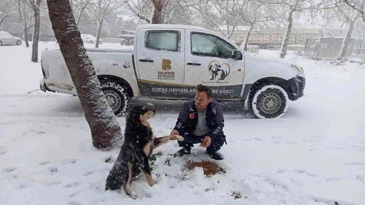 Balıkesir Büyükşehir Belediyesi soğuk ve karlı havalarda gıda bulmakta sıkıntı çeken sokak hayvanlarına yönelik besleme çalışmalarına aralıksız devam ediyor.