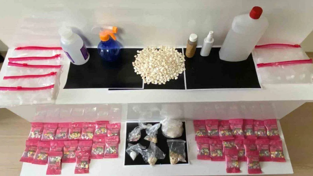 Balıkesir İl Emniyet Müdürlüğü Narkotik Suçlarla Mücadele Şube Müdürlüğü görevlilerince uyuşturucu madde ticaretini, kullanımını ve sokak satıcılarının faaliyetlerin önlemeye yönelik çalışmalarına devam ediyor. Ekipler yaptığı operasyonda şüphe üzerine durdurulan araç ve içerisinde bulunan 3 şahıs üzerinde alınan arama kararına istinaden yapılan aramada; 3 bin 314 adet ecstasy uyuşturucu hap, uyuşturucu madde üretiminde kullanıldığı değerlendirilen toplam 5 parça halinde bin 403,65 gram sıvı halde kimyasal uyuşturucu ham maddesi, 97,87 gram uyuşturucu ecstasy ham maddesi, 4,62 gram metamfetamin maddesi, 32 paket halinde üzerlerine uyuşturucu madde kimyasalı püskürtülmek sureti ile uyuşturucu hap üretiminde kullanıldığı değerlendirilen pasta süsü, uyuşturucu madde paketlemede kullanılan 5 adet şeffaf ambalaj poşeti ele geçirildi. Uyuşturucu Madde İmal ve Ticareti suçundan 3 şahıs gözaltına alındı.