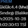 Balıkesir’in Sındırgı ilçesinde 4.4 büyüklüğünde bir deprem daha meydana geldi.