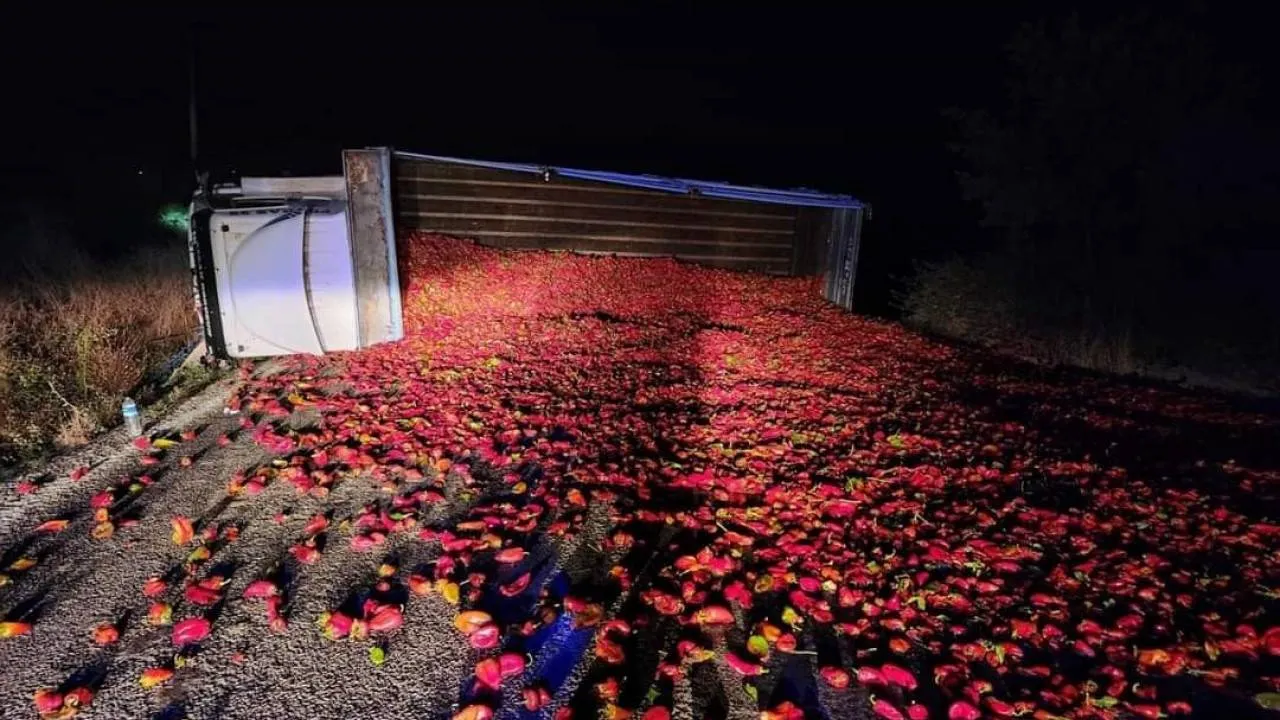 Balıkesir’in Gönen ilçesinde biber yüklü kamyonun devrilmesi sonucu meydana gelen trafik kazasında 2 kişi yaralandı.