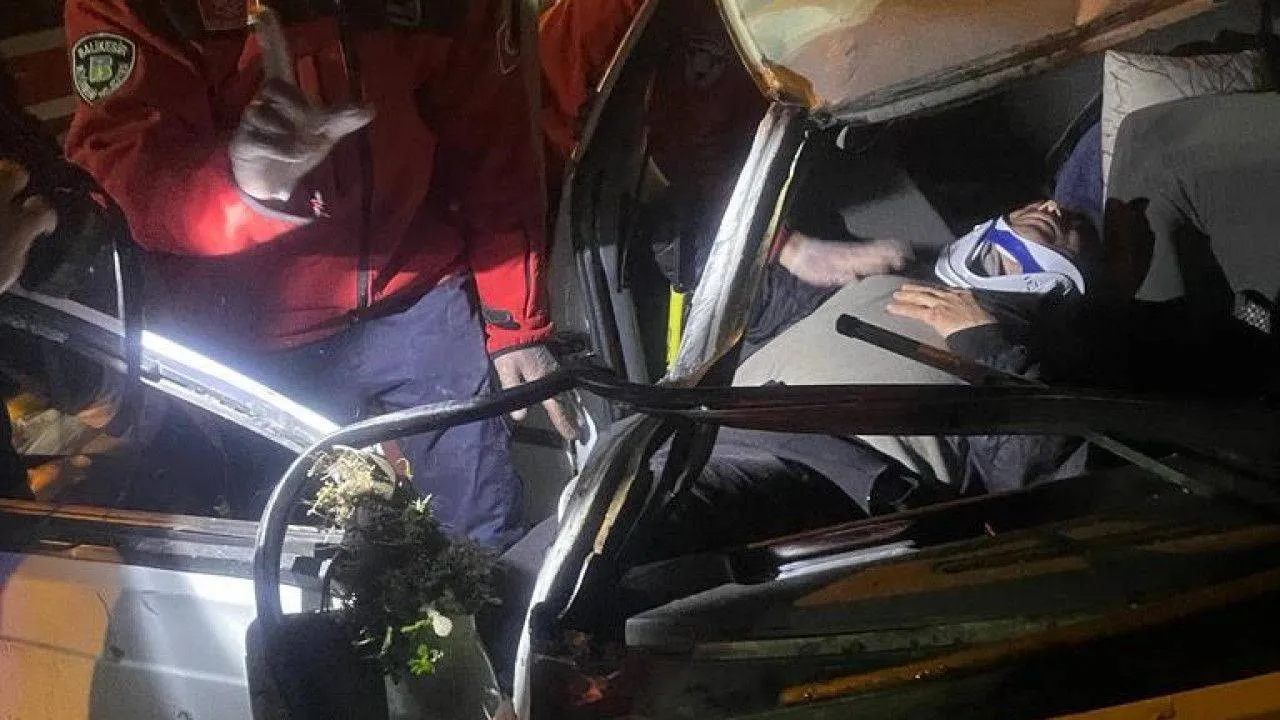 Balıkesir’in Burhaniye ilçesinde tırla çarpışan otomobilin içinde sıkışan sürücüyü itfaiye kurtardı.
