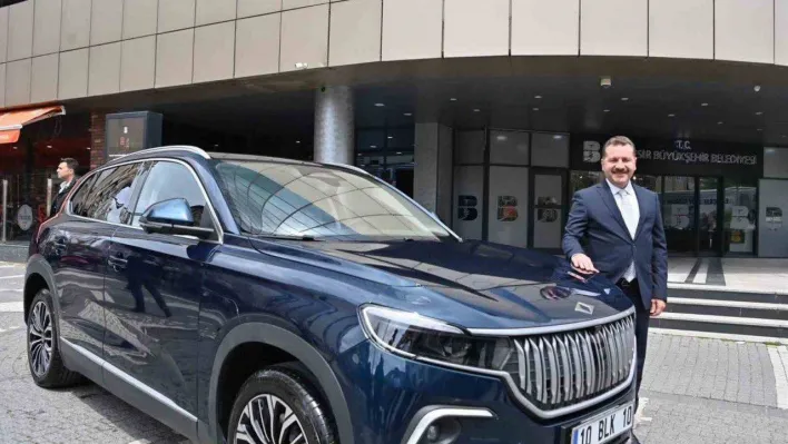 Balıkesir Büyükşehir Belediye Başkanı Yücel Yılmaz, makam aracı olarak kullanacağı Togg'u, belediye binası önünde teslim aldı. TOGG'u karşılarında gören vatandaşlar, inceleyerek fotoğraf çekildi.