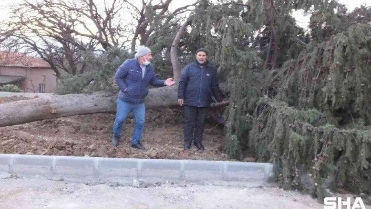 Balıkesir'de asırlık servi ağacı rüzgara dayanamadı