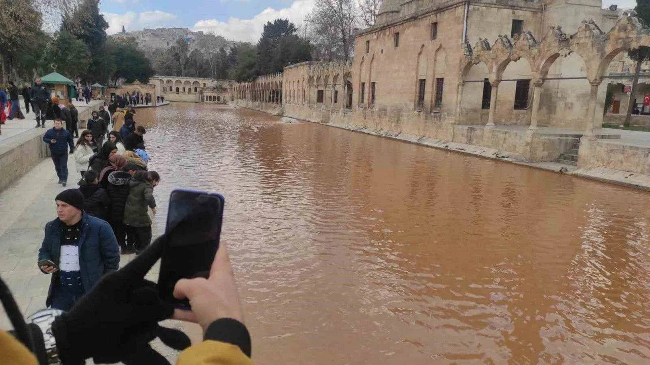 Kahramanmaraş merkezli depremlerden etkilenen illerden Şanlıurfa’da, kentin simgesi olan tarihi Balıklıgöl suyu çamur rengine büründü. Balıklıgöl’ü ziyaret eden vatandaşlar, çamur rengini alan göl karşısında şaşkınlığını gizleyemedi. Ziyaretçiler, kaybolan balıkların beslenmeleri için göle yem attı. Deprem sonrası çamur rengini alan Balıklıgöl’de ilk kez böyle bir görüntüyle karşı karşıya kaldıklarını belirten vatandaşlar, durum karşısında şaşırdıklarını söyledi.