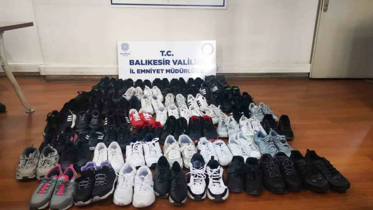 Edinilen bilgilere göre, 600 Evler, İhsaniye, HacıYusuf mahallelerinde 4 gün içinde meydana gelen çok sayıda ayakkabı hırsızlıkları üzerine polis çalışma başlattı. Bandırma Asayiş Büro Amirliği ekiplerince çevredeki güvenlik kameraları detaylıca incelendi. Görüntülerde, bir şahsın apartman içlerine girerek ayakkabıları çaldığı görüldü. Çalışmalarının devamında, kameralardan kimliği tespit edilen şüpheli A.Ç. (56) çaldığı farklı markalardaki 60 çift ayakkabı ile yakayı ele verdi. Ele geçirilen ayakkabılar sahiplerine teslim edildi. Şüpheli A.Ç. (56) gözaltına alındı.