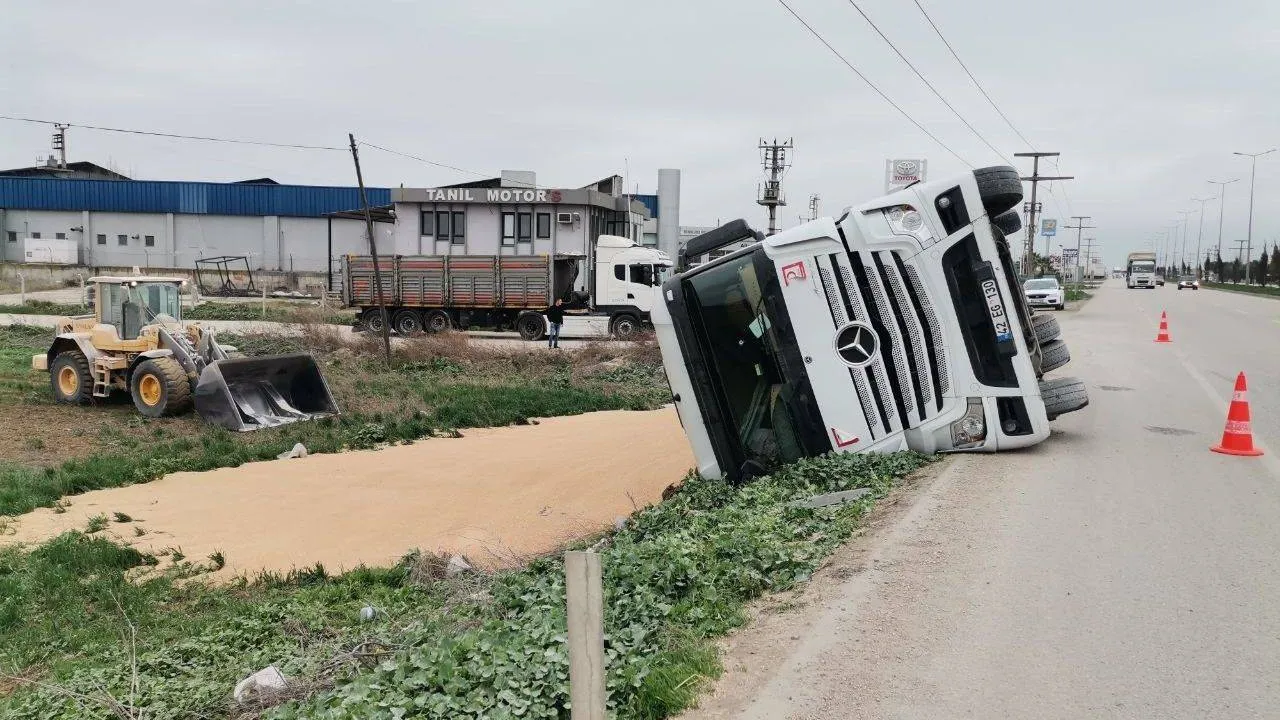 Edinilen bilgiye göre, Bandırma-Bursa Karayolu üzerinde seyir etmekte olan 42 EG 130 plakalı tır, başka bir aracın sıkıştırması sonucunda yoldan çıkarak devrildi. Sürücü Serkan A. (40) kazayı hafif sıyrıklarla atlattı. Yol kenarına dökülen tonlarca buğday, kepçe yardımı ile başka bir araca yüklendi. Kaza yerine gelen jandarma ekipleri, olayla ilgili inceleme başlattı.
