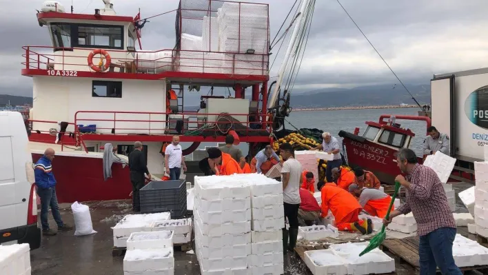Balıkesir'in Bandırma ilçesinde Balık Hali'ne gelen kayık, 1000 kasa palamut ile iskeleye yanaştı. Bandırma körfezinde tutulan balıklar Türkiye'nin dört bir yanına gönderildi.