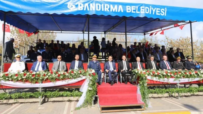 Saygı duruşu ve İstiklal marşının okunmasının ardından Atatürk heykeline çelenkler konuldu. Tören Cumhuriyet Caddesinde devam etti. Günün anlam ve önemini belirten konuşmayı Bandırma Belediye Başkanı Tolga Tosun gerçekleştirdi. Tosun "Vatan topraklarının dört yanında yaşanan işgaller, uzun yıllar boyunca süren savaşlar sonunda yorgun düşmüş bir millet, yoksulluk ve çaresizlik kıskacında umutların kırıldığı karanlık, acı ve zorlu günler 2 Temmuz 1920 tarihi Bandırma’yı da acı ve zorlu günlerle baş başa bıraktı. Bandırma’mız, o acı ve karanlık işgal günlerinin inanılmaz sıkıntılarını, Anadolu’nun tüm kent ve kasabaları kadar ve hatta belki de onlardan çok daha yoğun bir şekilde yaşadı. Bandırma’lı kendi topraklarında, kendi evinde esir olarak yaşamanın, zulüm ve işkence görmenin acısını derinden hissetti. Bandırma yaşadığı işgalin ilk günlerinden itibaren düşman kuvvetleri için stratejik önemini korumuş ve ulusal bağımsızlığımızı kazanmak adına sürdürdüğümüz Kurtuluş mücadelesi sonunda da işgalci güçlerin en son terk ettiği mevzi olmuştur. Bandırma işgal yıllarının acılarını ve sancılarını derinden yaşayan şehirlerden birisidir. Bağımsızlığımıza, özgürlüğümüze, toprak bütünlüğümüze yapılan bu işgalden bir an evvel kurtulmak, karanlık günlerden aydınlığa çıkmak gerekiyordu. İşgalci güçler masa başında ülkemizi parsel parsel bölüşürken unuttukları bir şey vardı; zorlukların ve hatta imkânsızlıkların bizim için hiçbir anlamı olmayacağını düşünemediler. İşgallerle birlikte vatan toprağında varoluş mücadelesi veren milletimizin yaşadığı günler çok zor ve çok acıydı. Zor ve acı olsa da tüm güçlüklerin karşısında; yok edilmek istenen bir ulusun destanlaşan, yok olmamaya, inadına direnen bir inancı ve azmi vardı. Vatan toprağı ve tam bağımsız bir Türkiye için ayağa kalkan Türk Milleti, bir çift mavi gözün ışığında büyük bir kurtuluş mücadelesine başladı. Sırasıyla İnönü’de, Dumlupınar’da, Sakarya’da destanlar yazıldı. Ebedi başkomutan Ulu Önder Gazi Mustafa Kemal Atatürk’ün emriyle başlayan Büyük Taarruz’la zafere ulaştık. 17 Eylül sabahı kurtuluş güneşi Bandırma’da doğdu. Mustafa Kemal Paşa önderliğinde başlayan milli mücadele hareketi sayesinde, işgallere karşı verilen mücadele topyekûn bir ölüm kalım savaşına dönüşmüş, Türk Milleti varını yoğunu ortaya koyarak bağımsız yaşama aşkını tüm dünyaya haykırmıştır. Ulusal kurtuluş mücadelemiz Ayyıldız Tepe’de sıkılan son kurşun ile taçlandırılmış, vatan topraklarımız özgürlüğüne kavuşmuştur" dedi