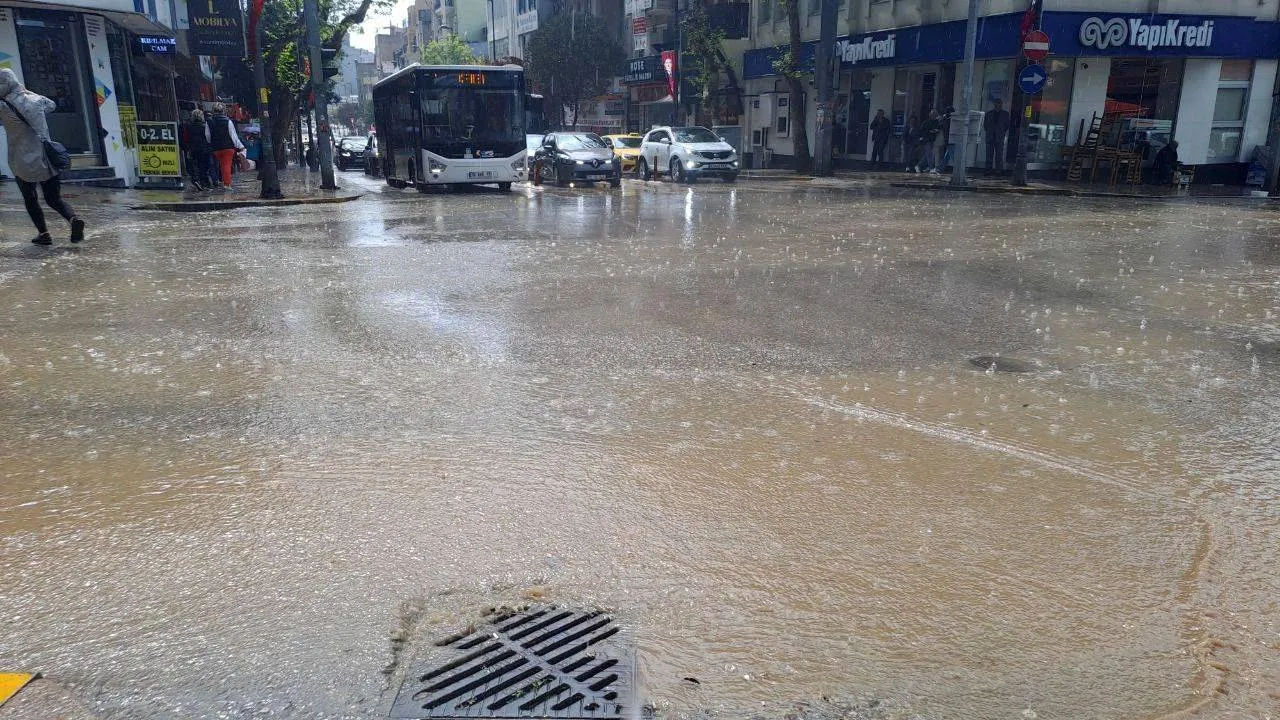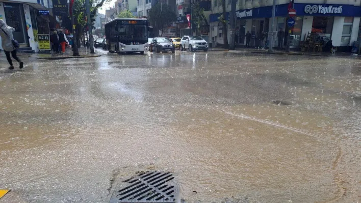 Balıkesir'in Bandırma ilçesinde aniden bastıran yağmur yağışıyla birlikte cadde ve sokaklar göle döndü.