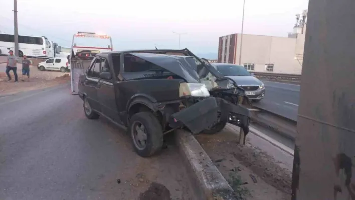 Bariyeri aşan otomobil yön levhası direğine çarparak durabildi: 3 yaralı