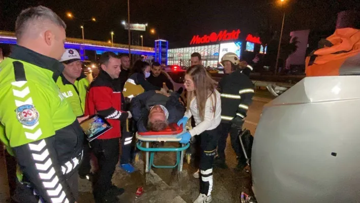 Bariyerlere çarpan hafif ticari araç devrildi : 1 yaralı