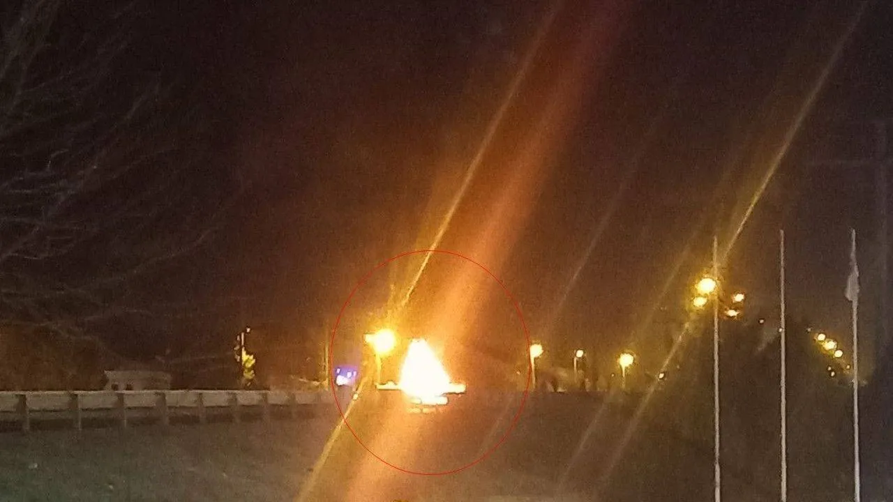 Tekirdağ'da bariyerlere çarparak takla atan otomobil, alev alev yanarak hurda yığınına dönüştü.