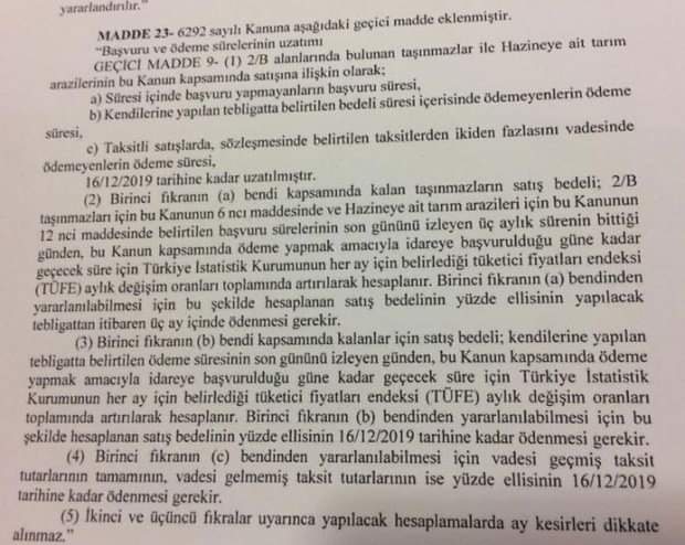 Konuyla ilgili düzenleme, AK Parti milletvekillerince TBMM Başkanlığı'na sunulan Tapu Kanunu ve bazı kanunlarda değişiklik yapılmasına dair kanun teklifinde yer aldı.
