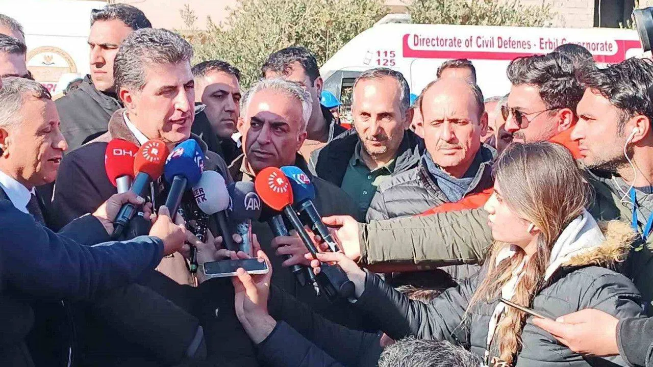 Ziyaret sırasında açıklamalarda bulunan Neçirvan Barzani, "Bugün milletimiz adına Türkiye devleti ve Türkiye milletine başsağlığı mesajımızı iletmek için geldik. Sizin acılarınız bizim acılarımızdır, sizin kötü günleriniz bizim kötü günlerimizdir. Bizim ihtiyaç duyduğumuz günlerde Türkiye devleti ve Türkiye hükümeti her seferinde bize yardımcı olmuşlardır. Acılarınızı paylaşmak ve vefa duygularımızı iletmek için bugün buradayız. Bu depremde hayatını kaybedenlere Allah’tan rahmet, yaralılara ise acil şifa diliyoruz. Eminiz ki Türkiye bu kötü günleri de geride bırakacak güce sahiptir. Türkiye güçlü yönetimiyle bu acıları da geride bırakacaktır" ifadelerini kullandı.