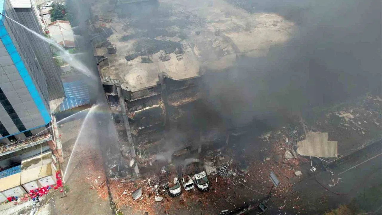 Başakşehir Organize Sanayi Bölgesi’nde bir iş hanında çıkan yangın 24 saattir devam ediyor. Yangın söndürme çalışmaları ve binanın son hali havadan görüntülendi.
