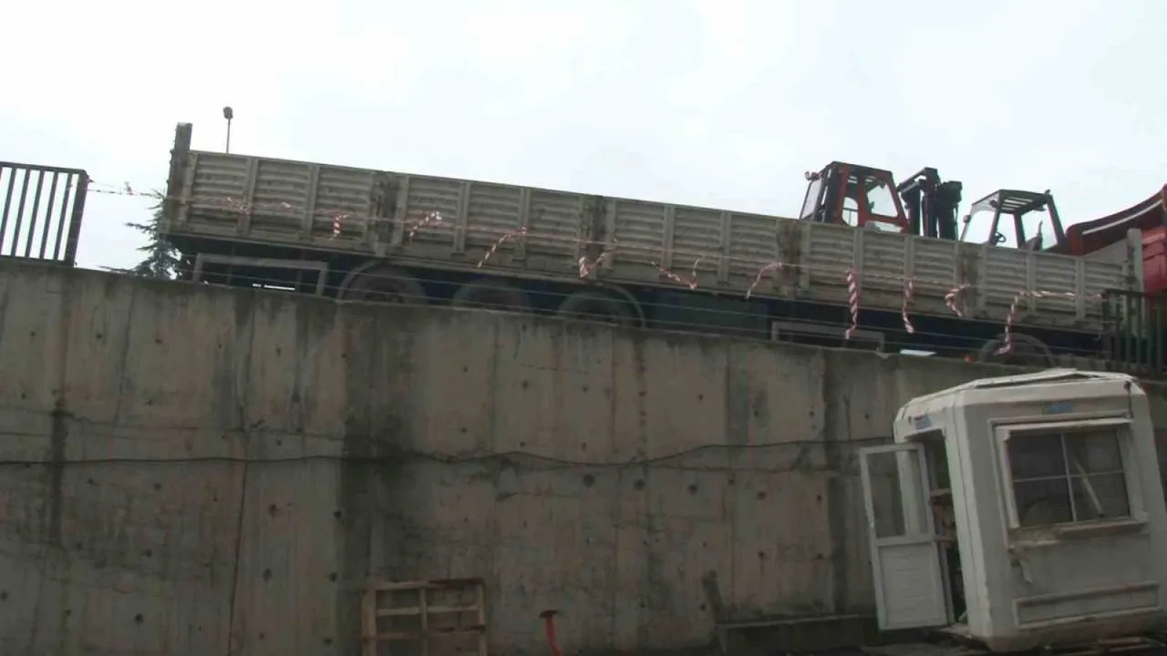 Başakşehir’de sürücüsünün direksiyon hakimiyetini kaybettiği bir tır, bariyerleri aşarak iş yerinin bahçesine düştü. Hafta sonu yaşanan kazada işçilerin izinli olması faciayı önledi. Kaza anı güvenlik kamerası tarafından görüntülendi.