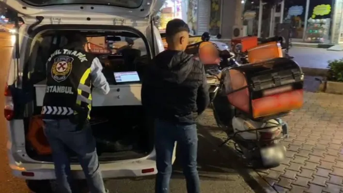 Başakşehir’de patlak lastikle giderek trafiği tehlikeye düşüren motokurye tespit edildi. Ehliyetsiz sürücüye polis ceza yağdırdı.