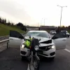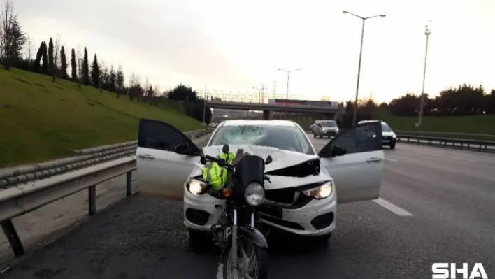 Başakşehir’de seyir halindeki araç, önünde aniden yavaşlayan motosiklete çarptı. Sürüklenen motosiklet sürücüsü hayatını kaybederken, gözyaşlarına boğulan araç sürücüsünü yakınları sakinleştirmeye çalıştı. Olay, Başakşehir Tem Ispartakule gişeler yolu üzerinde meydana geldi. Seyir halindeki M.B. isimli sürücüye ait 34 DFE 683 plakalı araç, iddiaya göre, yol üzerinde önünde yavaşlayan motosiklete çarptı. Motosiklet sürücüsünü önüne katan araç, motorcuyu metrelerce savurup yola attı. Araç güçlükle dururken, olay yerine polis ve itfaiye ekibi sevk edildi. Ekipler yolu trafiğe kapatıp geçişleri kontrollü olarak sağladı. Olay yerine gelen sağlık ekibi üzerinden kimlik çıkmayan sürücünün ilk müdahalesini yaptıktan sonra hayatını kaybettiğini tespit etti. Olay yerinde ağlayan araç sürücüsü M.B. yakınları tarafından sakinleştirildi. M.B. karakola götürülürken, motorcunun cenazesinin kaldırılmasının ardından yol trafiğe yeniden açıldı.