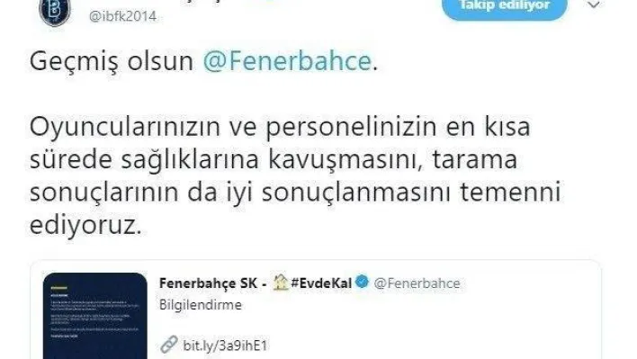 Başakşehir'den Fenerbahçe'ye geçmiş olsun mesajı