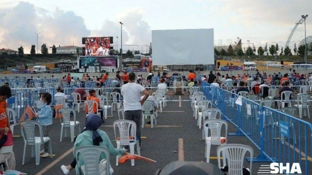Süper Lig’in 33. haftasında sahasında Kayserispor’u ağırlayacak olan Medipol Başakşehir, sahadan zaferle ayrılması durumunda, 2019-2020 sezonunun şampiyonu olacak. Pandemi nedeniyle seyircisiz oynanan mücadele öncesi Başakşehir Belediyesi, Fatih Terim Stadyumu’nda bulunan açık otoparka dev ekran kurdu. Korona virüs nedeniyle sosyal mesafe kuralına uygun olarak sandalyeler alana yerleştirilirken, turuncu-lacivertli taraftalar, ateşleri ölçülerek alana alındı.