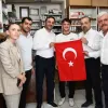 Heyet, program kapsamında iş yerlerini tek tek ziyaret ederek esnafa Türk bayrağı hediye etti ve Cumhurbaşkanı Erdoğan’ın çağrısına desteklerini iletti.