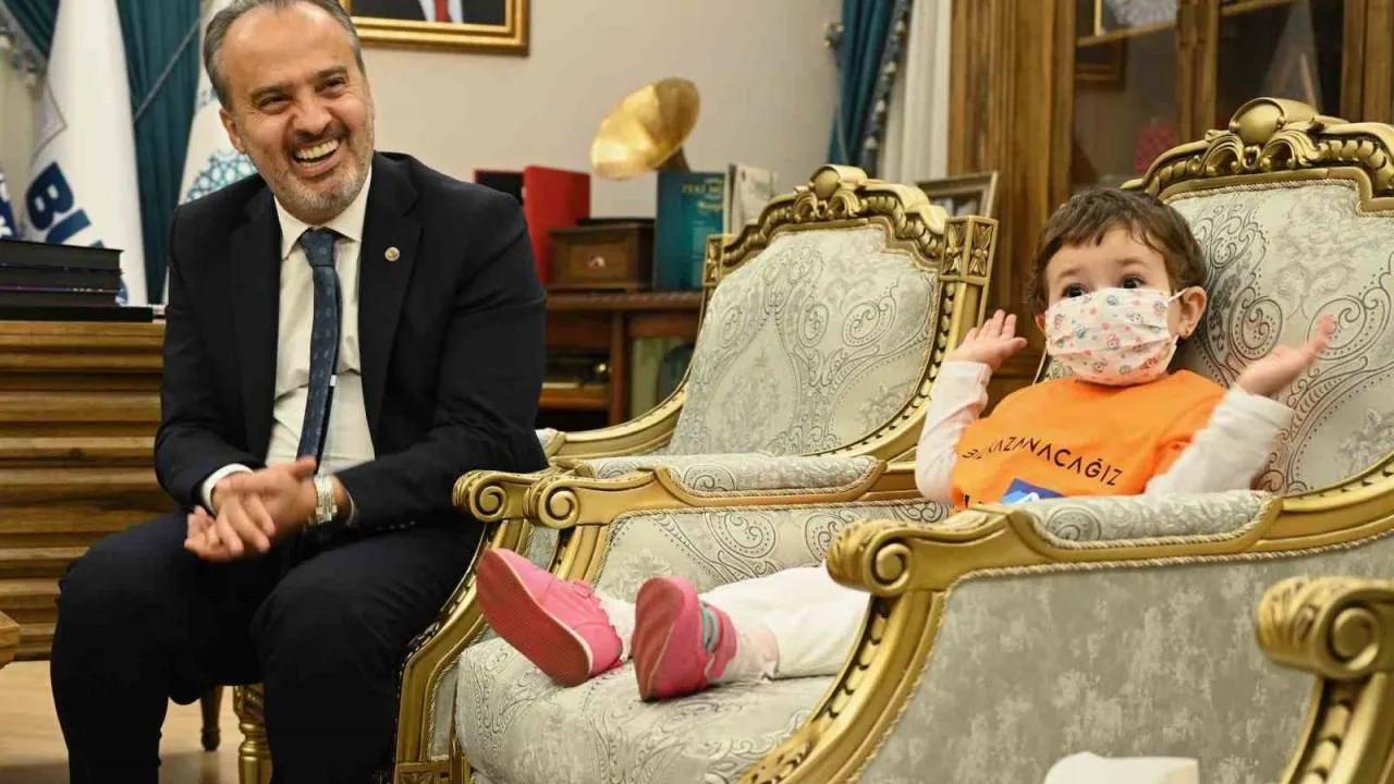 Bursa Büyükşehir Belediye Başkanı Alinur Aktaş, 2-8 Kasım Lösemili Çocuklar Haftası etkinlikleri kapsamında lösemiyle mücadele eden 3 küçük kahramanı makamında konuk etti.