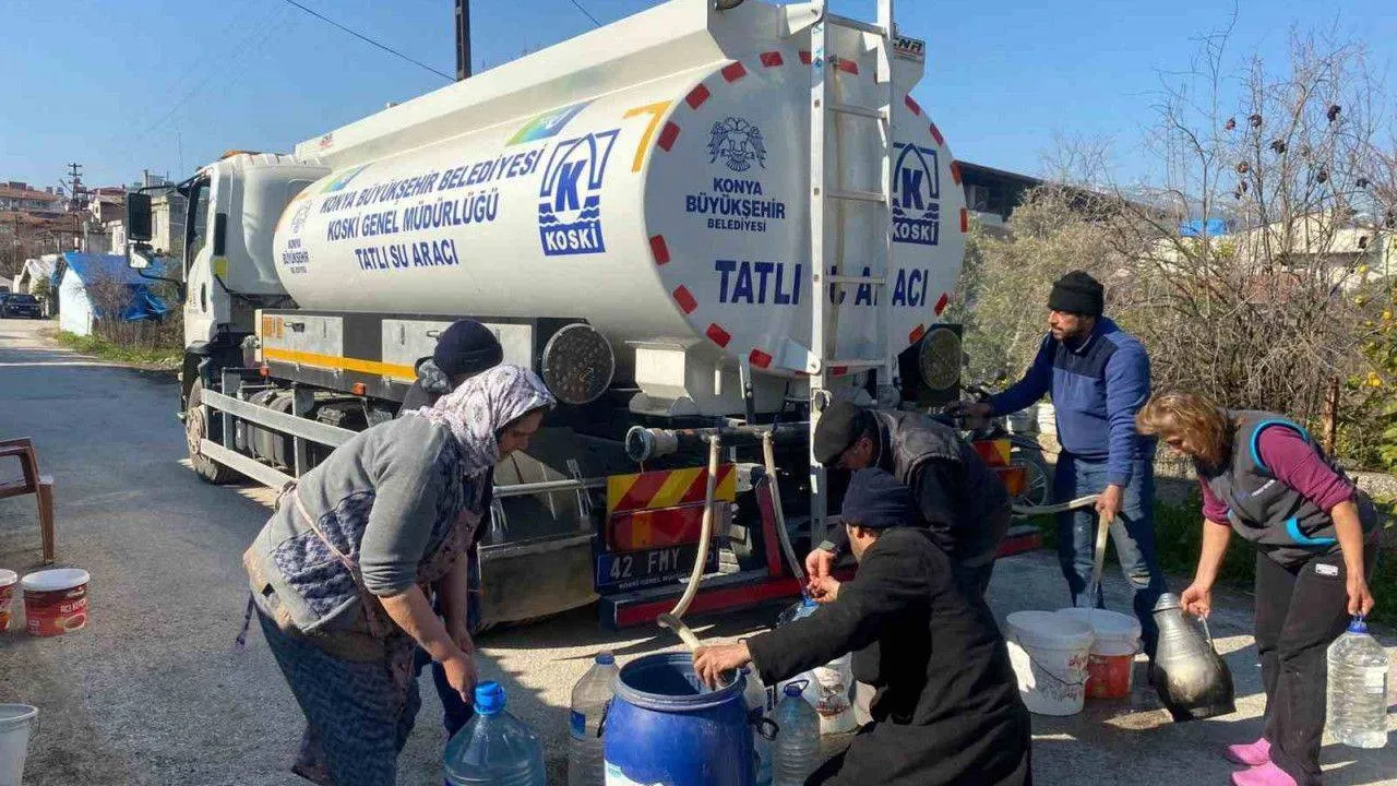 Kahramanmaraş merkezli depremlerin ilk gününden bu yana Hatay'da bulunan Konya Büyükşehir Belediye Başkanı Uğur İbrahim Altay, Hatay'da içme suyu isale hatları, içme suyu şebekesi ve içme suyu tesislerinin bakımı ve onarımı için gayret ediyoruz. Yer altı sisteminde patlakları tek tek belirleyip onarıyoruz. Kuyuları çalıştırdık, ihtiyaç olan bölgelere temiz su sağlıyoruz dedi.