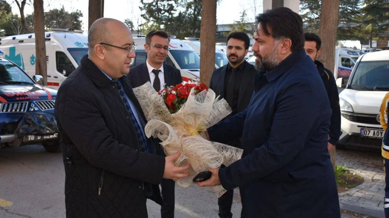 AK Parti Balıkesir İl Başkanı Dt. Ekrem Başaran, Balıkesir Acil Sağlık Hizmetleri Başkanlığını ziyaret ederek sağlık çalışanlarının 14 Mart Tıp Bayramını tebrik etti.