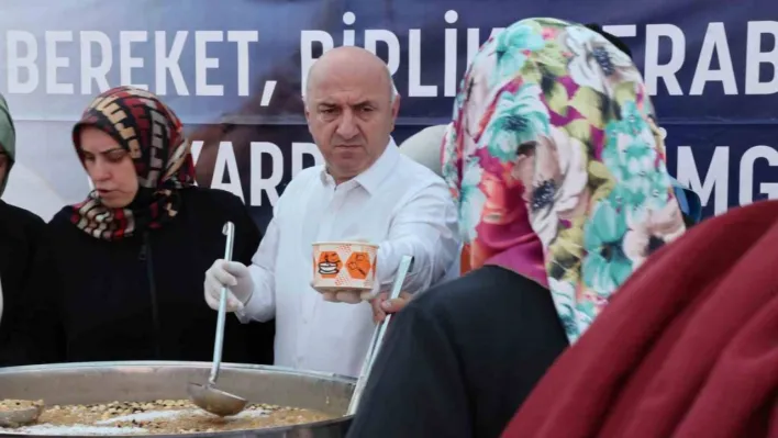 Darıca Belediye Başkanı Muzaffer Bıyık, aşure kazanın başına geçerek vatandaşlara aşure dağıttı ve beraberlik mesajı verdi.