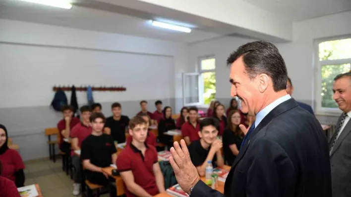 Osmangazi İlçe Milliği Eğitim Müdürü Gürhan Çokgezer ile birlikte sınıfları gezen Başkan Dündar, sohbet ettiği öğrencilere üniversiteye hazırlık yardım kitap seti hediye etti.