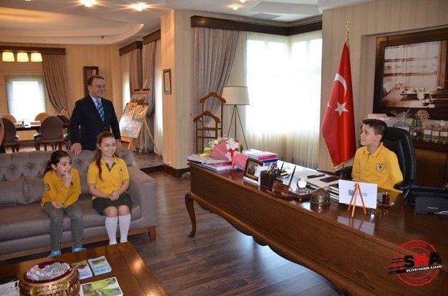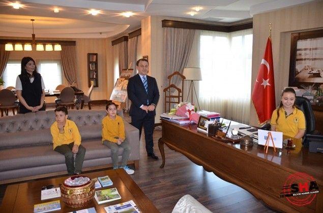 Silivri Belediye Başkanı Özcan Işıklar'ın koltuğunu sembolik olarak devralan Turgut Reis İlkokulu 4-A sınıfı öğrencileri, talimatlarını sıraladı.