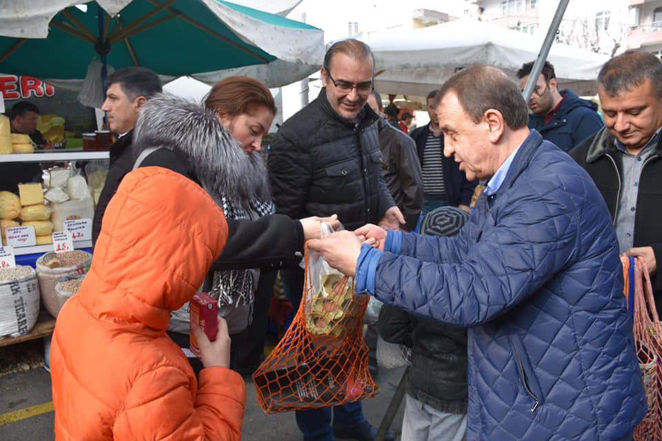 Çevre kirliliğini önlemeyi ve naylon poşet kullanımını azaltmayı hedefleyen Silivri Belediye Başkanı Özcan Işıklar, ilçe genelindeki semt pazarlarında hemşerilerine alışveriş filesi hediye etti.