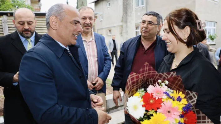 Körfez Belediye Başkanı Şener Söğüt'ün girişimleri sonucunda doğalgazına kavuşan Kirazlıyalı Mahallesi sakinleri, Başkan Söğüt'ü çiçeklerle karşıladı.