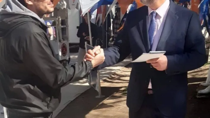 Başkan Suer, seçim standında broşür dağıttı