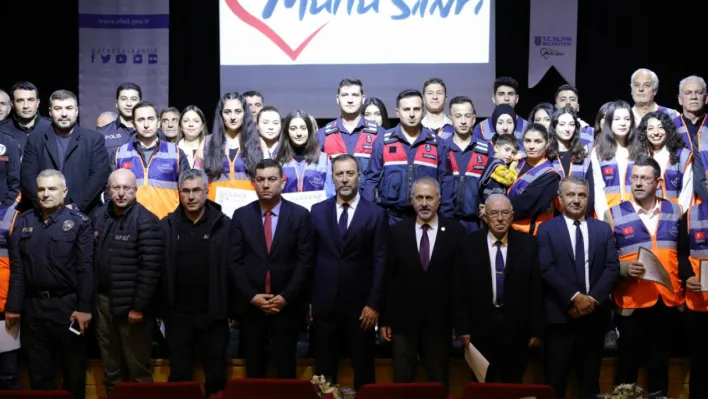 Silivri Belediyesi Afet Koordinasyon Merkezinin Destek AFAD Gönüllüsü eğitimlerini tamamlayan 35 mahalle muhtarı ve Rumeli Üniversitesinden 110 öğrenci için sertifika ve kimlik dağıtım töreni düzenlendi. Törende konuşan Başkan Yılmaz, 'Afetlerin olumsuz etkilerini azaltmak ancak ve ancak başarılı bir risk yönetimi ve başarılı bir toplumsal bilinçlenme ile mümkün olabilir. Geçmişteki acı tecrübelerimizden ders çıkarmalıyız.' dedi.