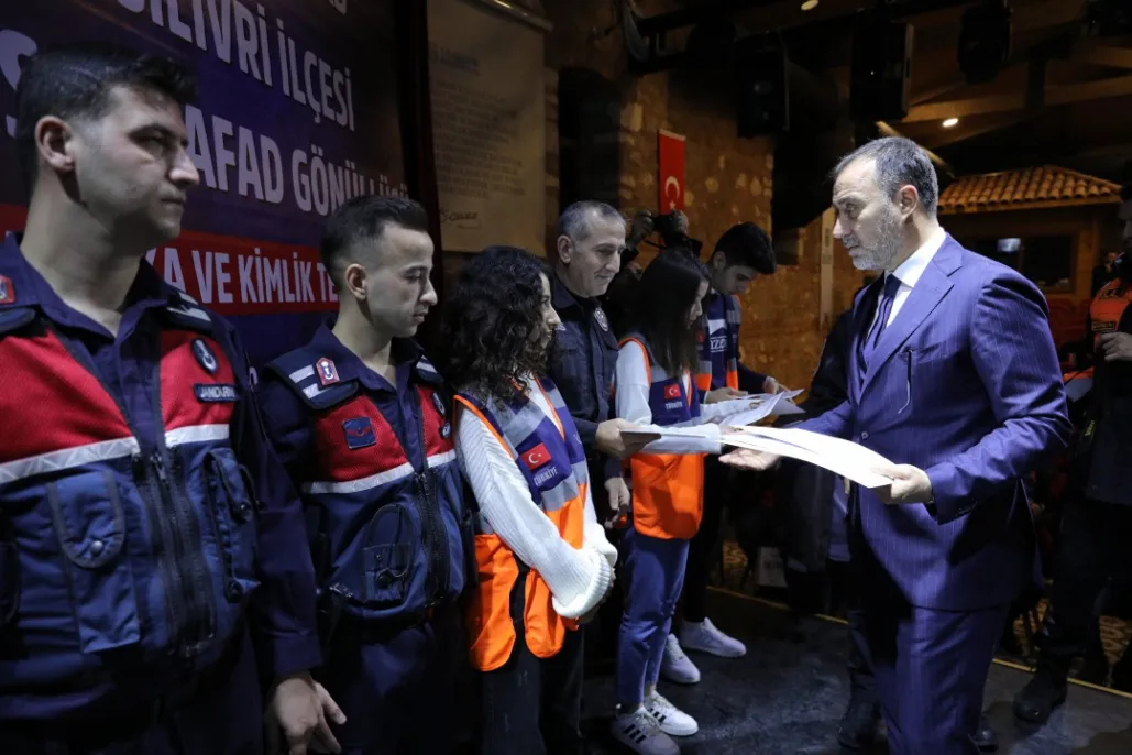 Silivri Belediyesi Afet Koordinasyon Merkezinin Destek AFAD Gönüllüsü eğitimlerini tamamlayan 35 mahalle muhtarı ve Rumeli Üniversitesinden 110 öğrenci için sertifika ve kimlik dağıtım töreni düzenlendi. Törende konuşan Başkan Yılmaz, 'Afetlerin olumsuz etkilerini azaltmak ancak ve ancak başarılı bir risk yönetimi ve başarılı bir toplumsal bilinçlenme ile mümkün olabilir. Geçmişteki acı tecrübelerimizden ders çıkarmalıyız.' dedi.