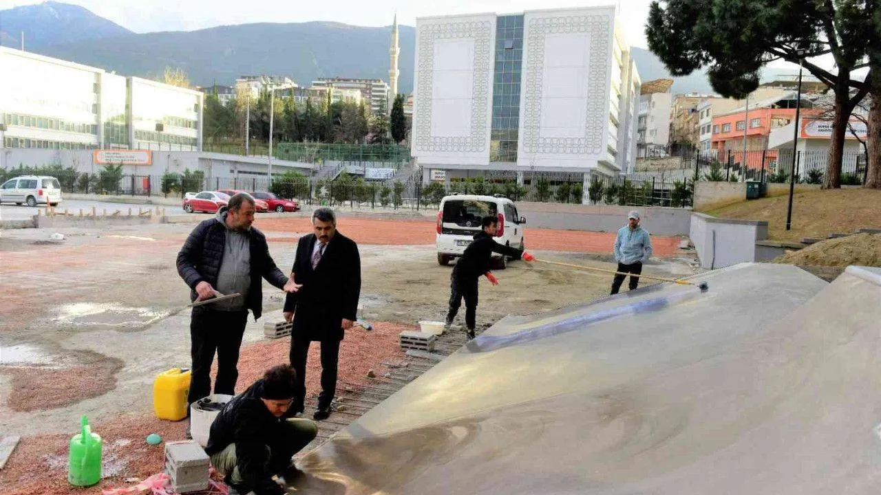 Yıldırım Belediye Başkanı Oktay Yılmaz, Şükraniye Mahallesi’nde bulunan Ahmet Taner Kışlalı Meydanı Parkı’nın 2’nci etabına skate park kazandırıyor. 500 metrekare alan içerisine kazandırılacak olan parkta devam eden çalışmaları yerinde inceleyen Başkan Oktay Yılmaz, proje çerçevesinde kaykay pistinin hemen yanına futbol, voleybol ve basketbol oynamak isteyen gençler için de çok özellikli bir saha yapacaklarını belirtti.