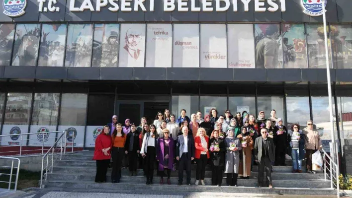 Lapseki Belediye Başkanı Eyüp Yılmaz, Başkan yardımcısı Necdet Çelik, MHP Belediye meclis üyesi Derya Doğan ve İYİ Parti Belediye Meclis üyesi Seval Akça belediye de çalışan kadın personellerin 8 Mart Dünya Kadınlar Gününü kutlayıp çiçek takdim etti.